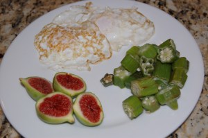 So for breakfast this morning I had eggs from our chickens, okra from our next door neighbor, and the most beautiful figs from a patient’s yard. All of these amazing and vital foods came from very local sources of nourishment. I just wanted to remind everyone how lucky we are to have access to fresh, organic and local food sources. There was a quote in the paper today that put some real numbers to the thought of eating local.