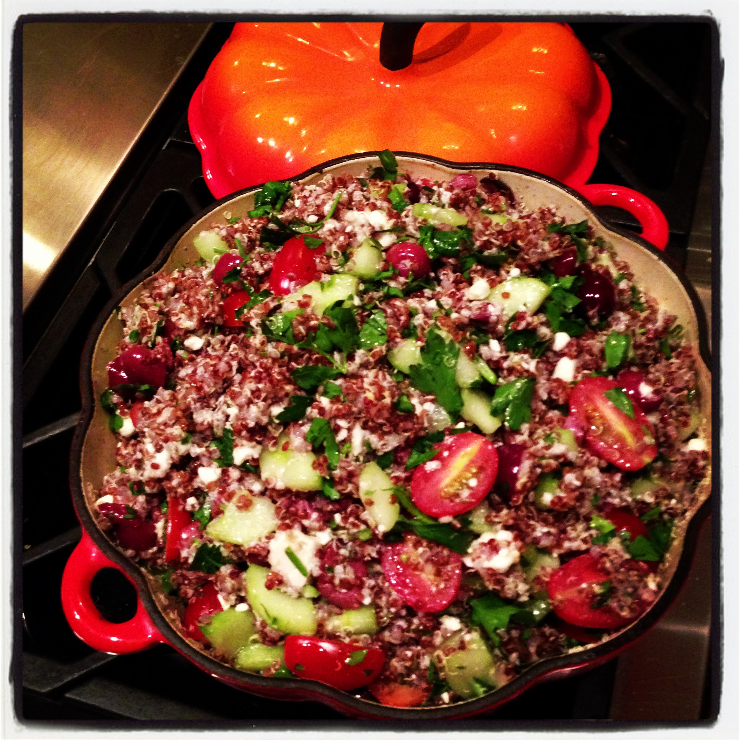 So, probably one of my favorite foods that I make is my gluten free tabbouleh. Made with organic red quinoa and chia seeds, it is the perfect go to power food, packed with yummy goodness. I make it year round and at least once a week so it is always in my fridge. The kids love it as well as everyone else.