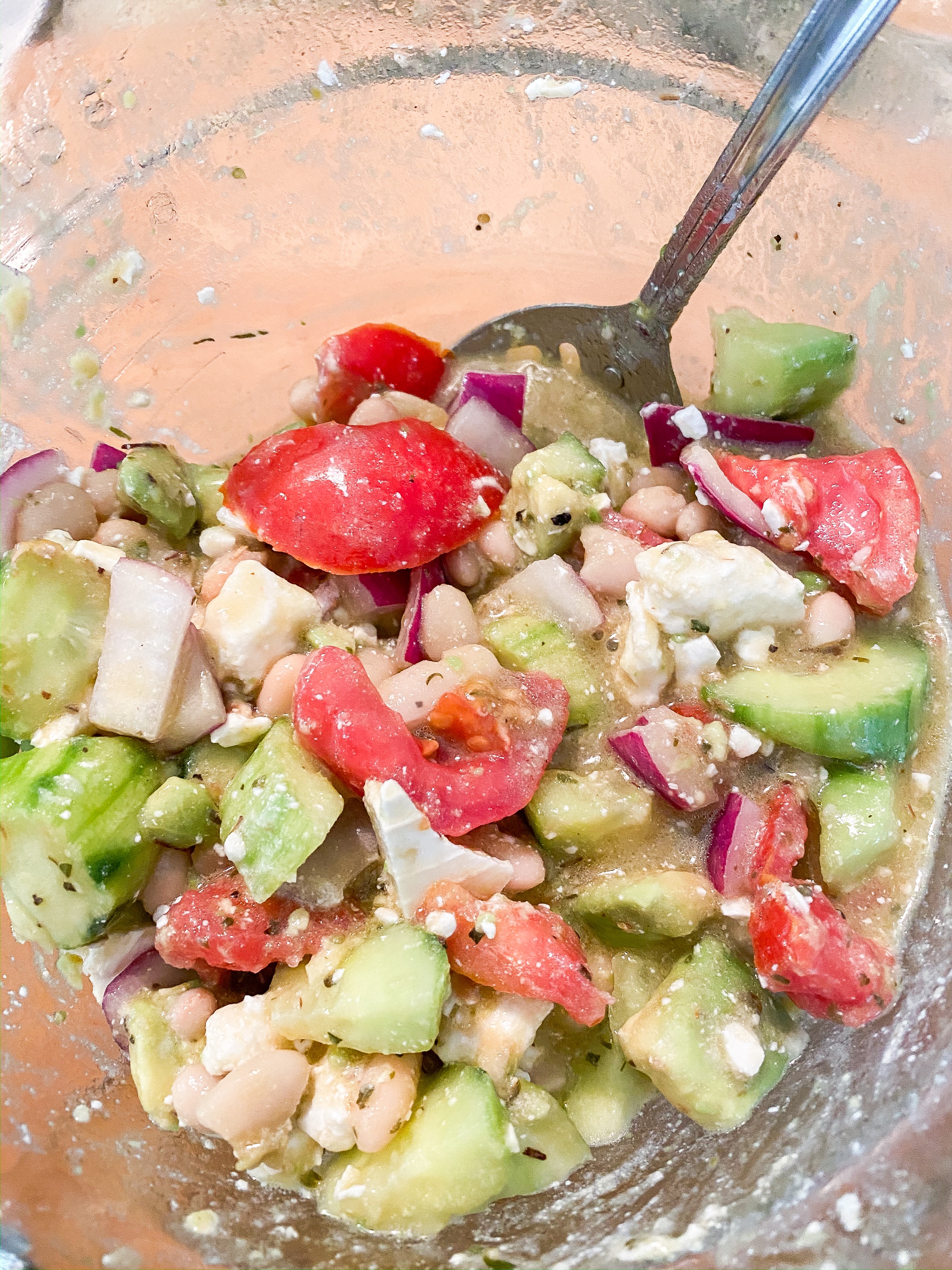 I experienced a Greek salad along the shore with my parents and my husband that was just perfection. It was such a simple salad but the ingredients still sing the song of that moment to me every time that I put them together. The tomatoes were rough cut, not sliced. The cucumbers were the same. The olive oil was next level pure pressed sunshine and earth….. and the feta was just a blessing of the moment.