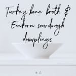 Turkey bone broth soup with Einkorn sourdough dumplings